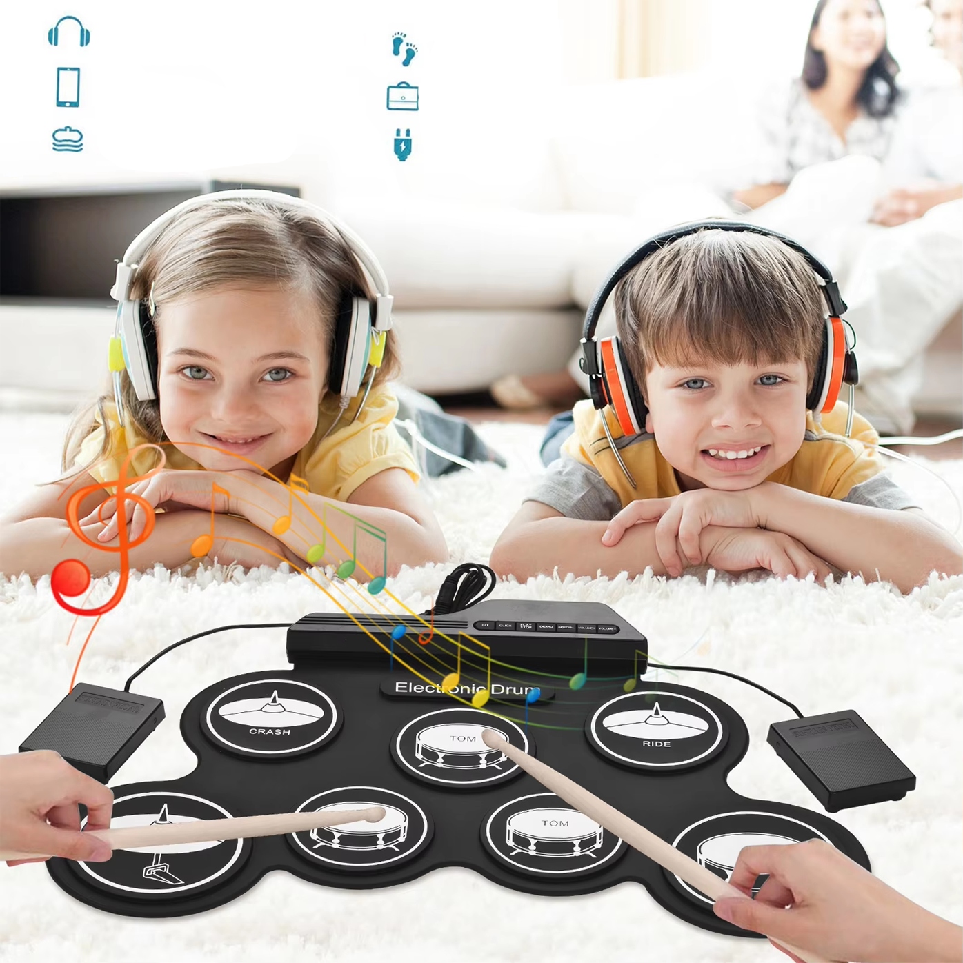 Электронная ударная установка —идеальное решение для новичков, детей и всех любителей музыки, которые хотят развивать свои навыки где угодно. Будь то обучение, практика или спонтанное развлечение, этот компактный набор обеспечивает реалистичные впечатления от игры на барабанах в удобном формате. Благодаря возможности подключения наушниковпозволяет играть тихо, не мешая окружающим.