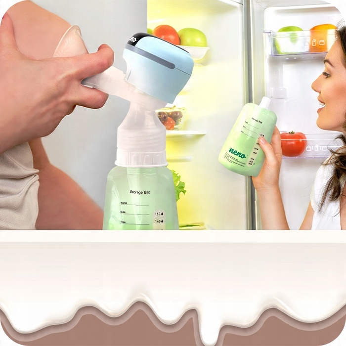 Если у вас слишком много молока, вы можете легко сцедить его, заморозить и использовать позже. Для этого используйте пакеты для хранения грудного молока Neno, которые благодаря точному разъему можно прикрепить непосредственно к молокоотсосу Neno, а не к бутылочке.