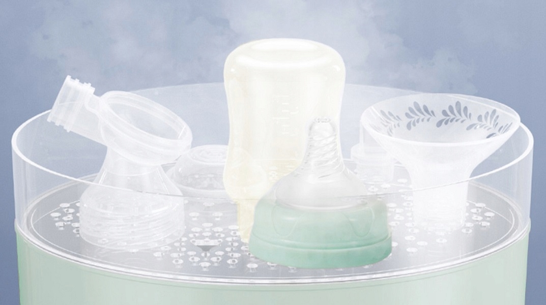 Компоненты молокоотсоса можностерилизовать, как бутылочки и соски, с помощью парового стерилизатора.