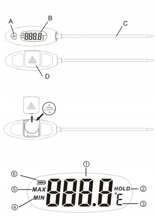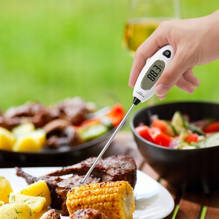 Это устройство позволяет точно проверять температуру готовых блюд. Он идеально подходит для измерения температуры мяса, пирожных, жидкостей и всех видов продуктов питания и напитков. Изделие также можно использовать в лабораториях, на заводах и везде, где необходим контроль температуры.