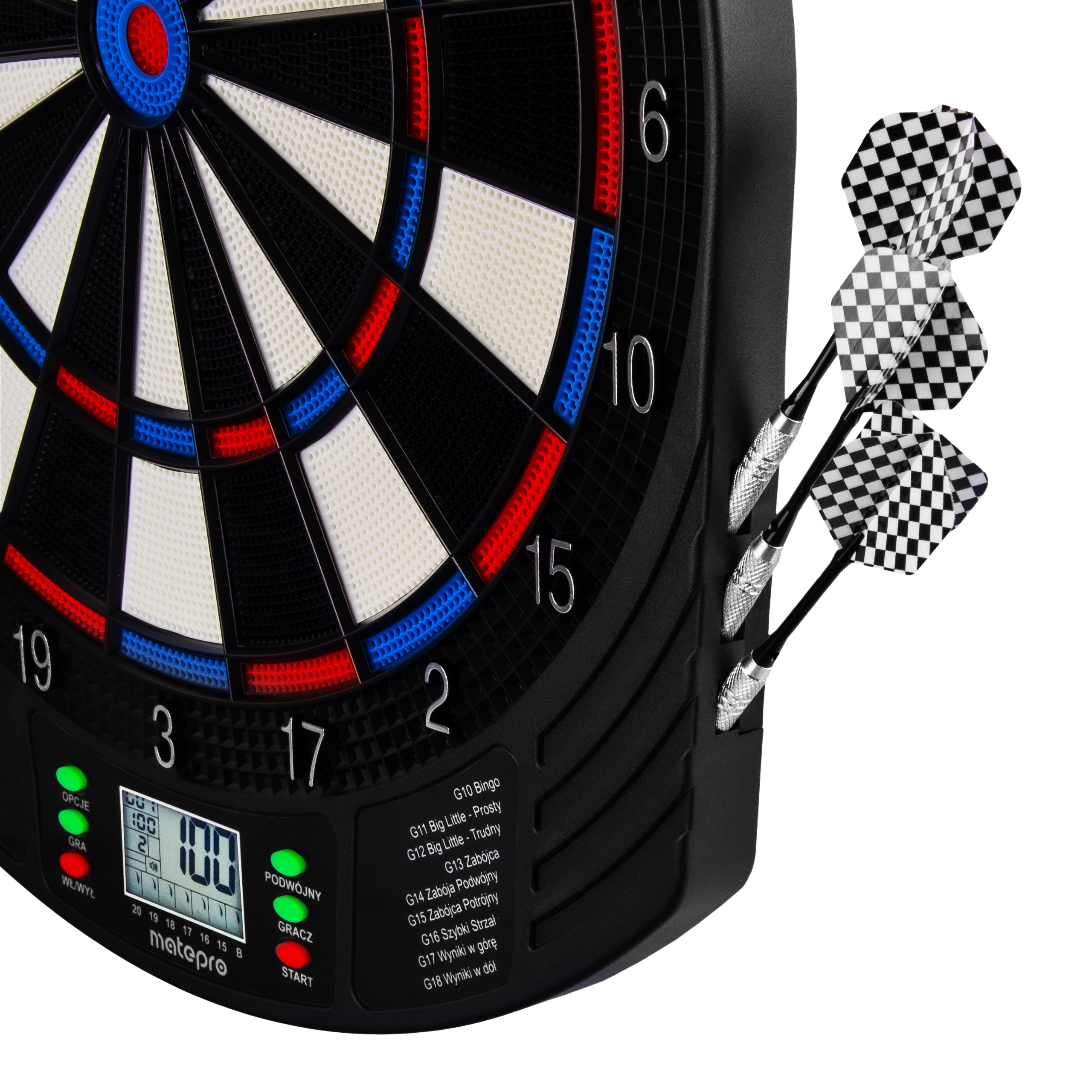 Благодаря 18 играм (включая бесчисленное множество комбинаций) вам никогда не будет скучно играть в дартс. Кроме того, циферблат имеет звуковой сигнал, а настройку циферблата облегчает подробная инструкция на польском языке.