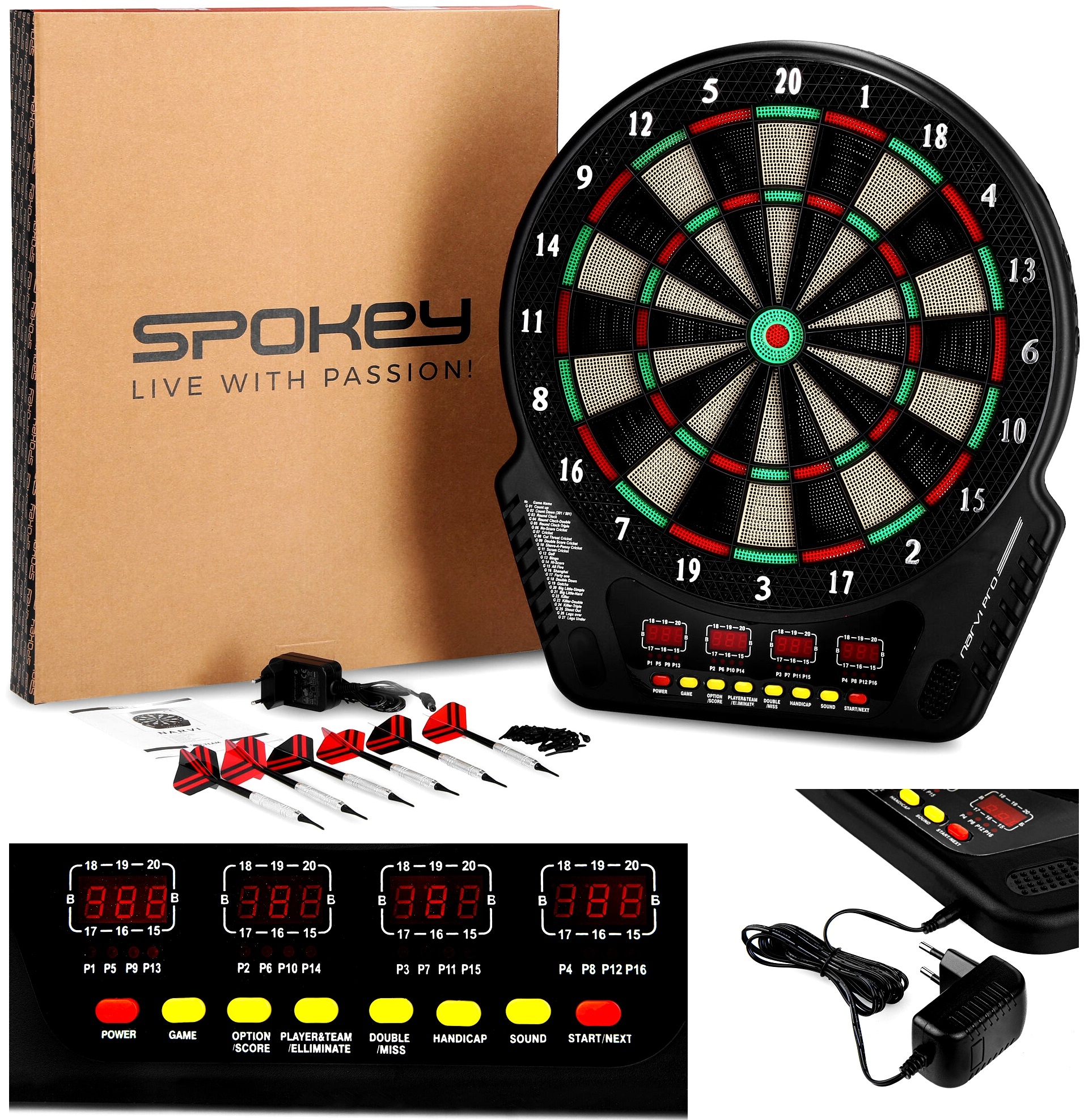 Электронный дартс Spokey Narvi Pro 240 Games Светодиодный источник питания