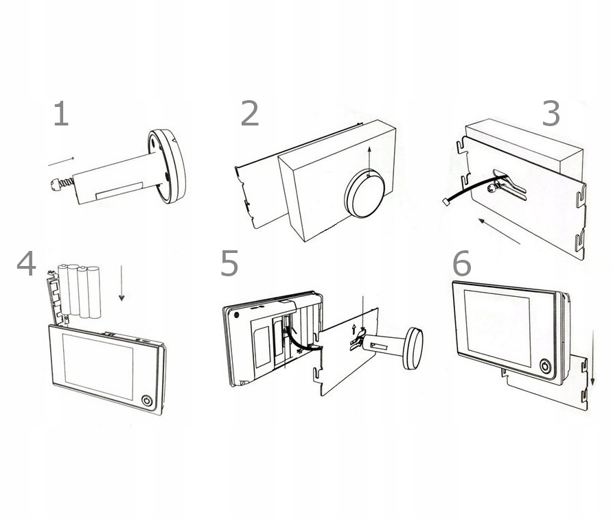 6: Аккуратно повесьте монитор на металлический кронштейн, стараясь не повредить кабель. Снимите защитную пленку с монитора и объектива камеры.
