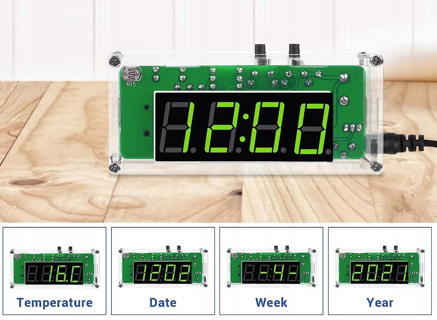 Электронные часы 4-битный зеленый светодиод + корпус, уроки пайки