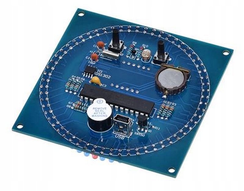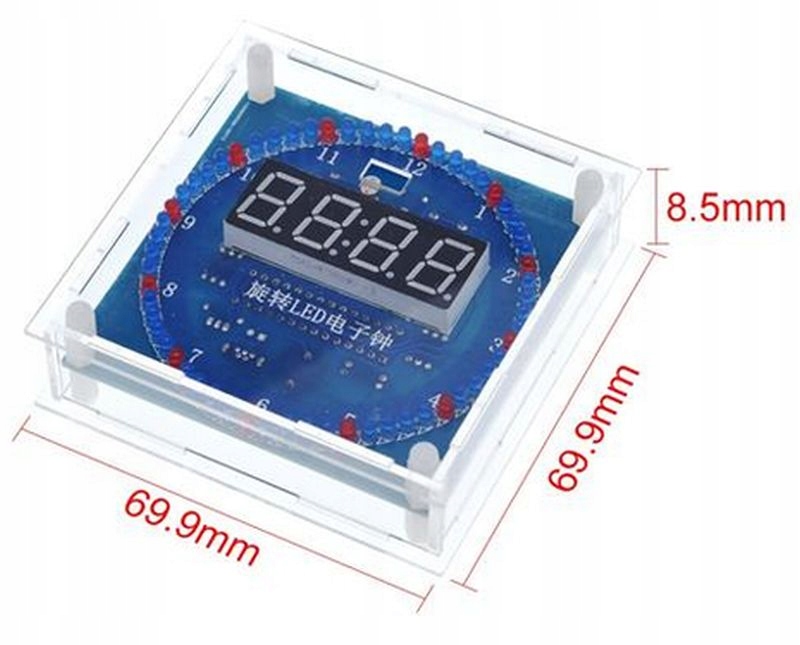 Уникальный набор для самостоятельной сборки, сочетающий в себе функции часов, будильника, термометра и привлекательного вращающегося светодиодного дисплея. Устройство использует эффект постоянства зрения (POV), создавая динамичные, четкие показания времени и температуры в воздухе. Это идеальный проект как для новичков в области электроники, так и для любителей, ищущих впечатляющую и познавательную задачу.