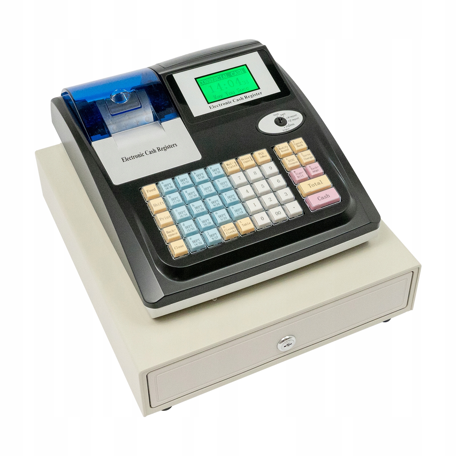Большая емкость: Кассовый аппарат включает 36 отделов, 10 000 ПЛАГИНОВ, 10 кассиров и 50 идентификаторов продавцов, что соответствует вашим многочисленным рабочим потребностям.