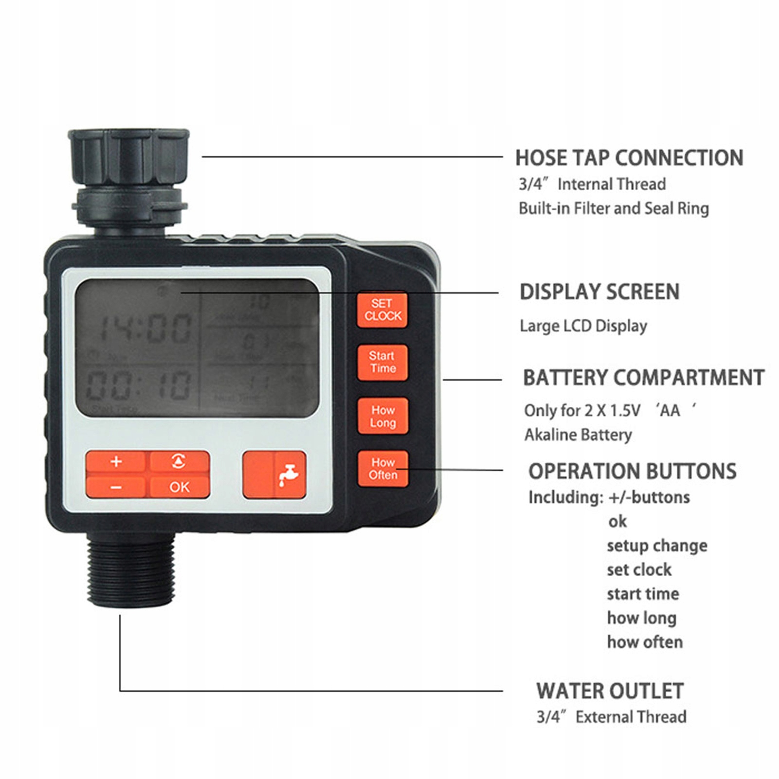 5. Таймер водонепроницаемый, его можно использовать снаружи и изготовлен из высококачественного материала, более устойчивого к воздействию и износу.