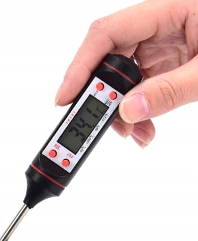 Это отличный инструмент для измерения температуры жидкостей, масла и воздуха. дома или на рабочем месте. Оснащен длинной иглой из нержавеющей стали с датчиком температуры на конце.