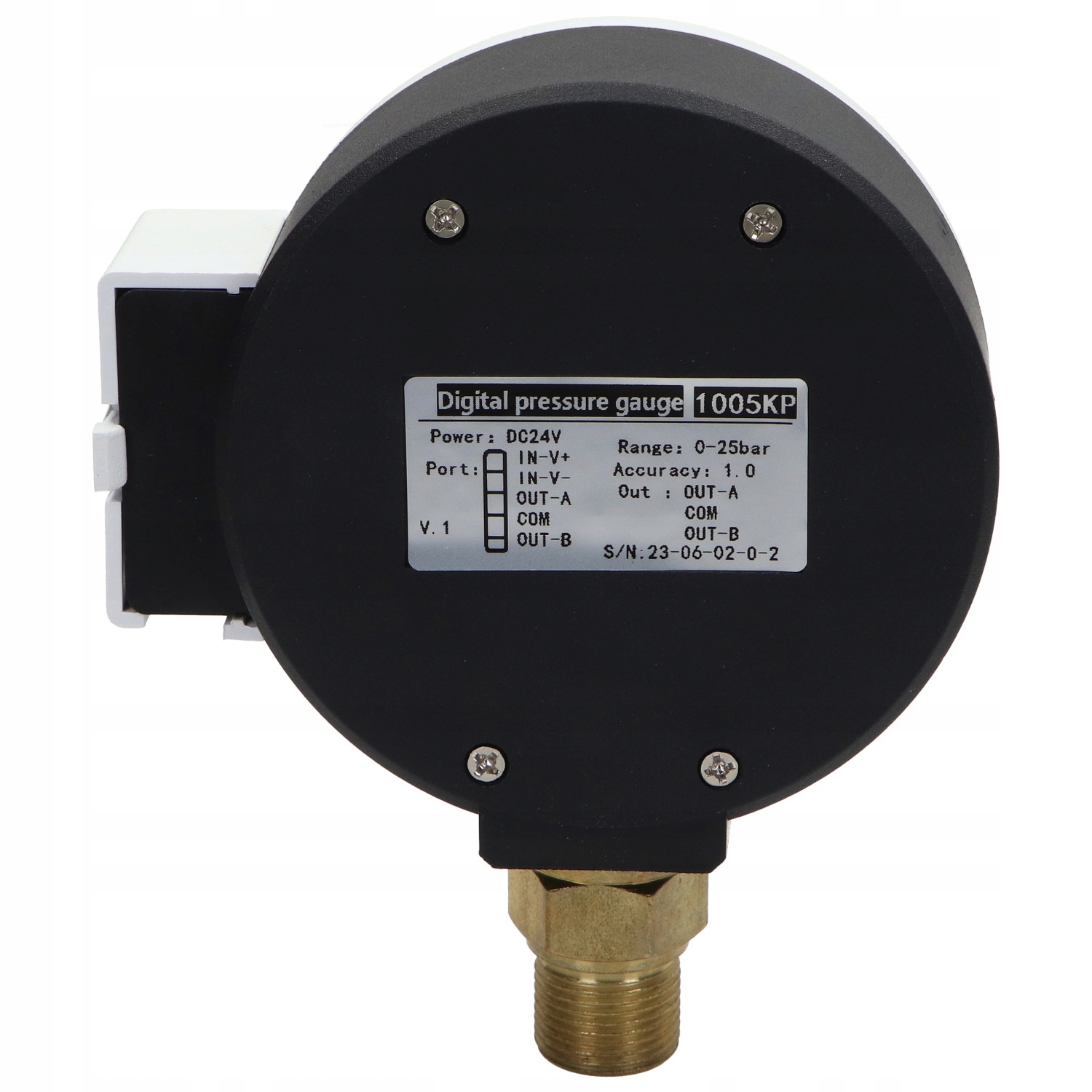 Электронный цифровой датчик давления с численным дисплеем. Диаметр диаметра: 100 мм, диапазон измерений: 0-25 бар, нижнее соединение. Изготовлен из высококачественного пластика. Практический инструмент для измерения давления дома и в мастерской.