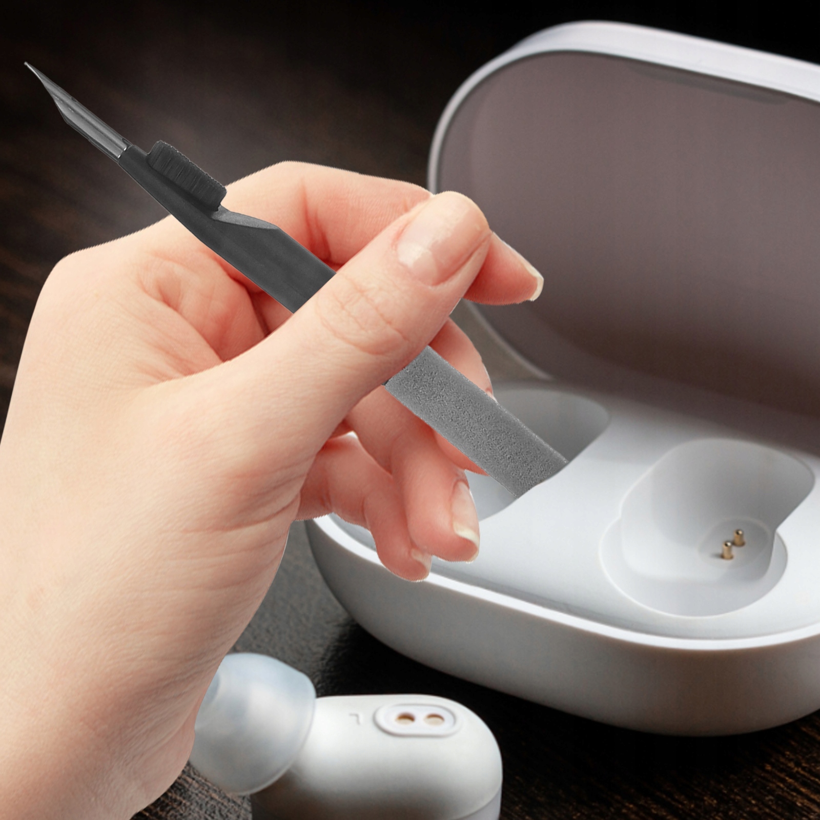Набор инструментов для бережной чистки позволяет очистить пыль с наушников и клавиатуры, это удобно и полезно.