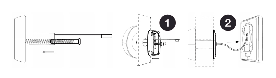 - Установите рамку на дверь. Затяните винт, чтобы стабилизировать видоискатель и металлическую рамку. Подключите сигнальный разъем к разъему дисплея и наденьте дисплей на раму на двери.