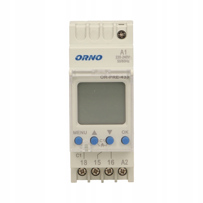 orno или pre-433 Programerm имеет ЖК-дисплей, который позволяет устанавливать времени на электротехнические устройства и выключение и выключение (например, Освещение, обогреватели, вода, реклама и т. Д.). Он предназначен для установки на рельсе DIN TH-35