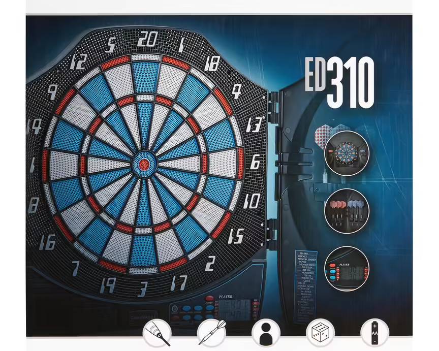 Вам нужен дартс, который легко впишется в интерьер вашего дома? Дартс ED 310 имеет запирающуюся дверцу, за которой можно спрятать дротики после игры.