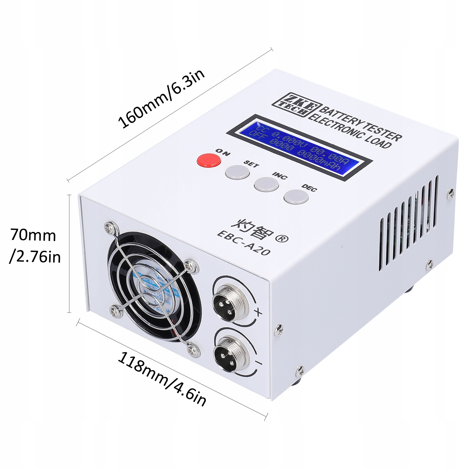 EBC-A20 — компактный и современный электронный тестер нагрузки и аккумуляторов, созданный известным производителем ZKE. Эта модель, разработанная с учетом комфорта и точности, имеет компактные размеры и легкий, очень прочный металлический корпус. Благодаря простому интерфейсу и легкой настройке EBC-A20 идеально подходит как опытным специалистам по электронике, так и тем, кто только начинает свое приключение с тестированием аккумуляторов. Он предлагает широкий диапазон напряжения в режиме зарядки (0,00–18,00 В) и тока разряда (0,10–20,00 А) с точным разрешением изменения тока 0,01 А. Данная модель позволяет регулировать предельные значения. В режиме разряда пользователь может выбирать между режимом постоянного тока (DSC-CC) и режимом постоянной мощности (DSC-CP).