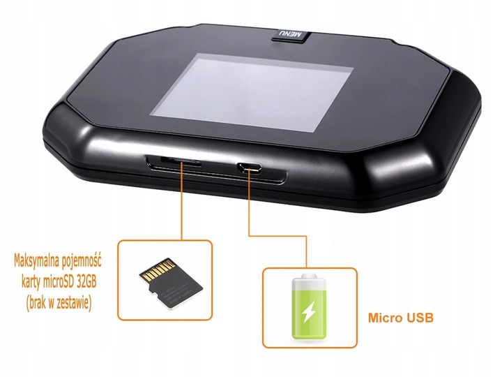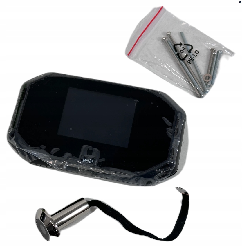 Электронный дверной видеорегистратор с функцией записи на карту Micro SD, с питанием от аккумулятора. Устройство заменяет традиционный оптический видоискатель (так называемый глазок). Это позволяет вам видеть человека, стоящего прямо перед дверью. После установки аккумуляторов вместо батареек их можно будет заряжать от внешнего порта microUSB, расположенного в верхней части корпуса экрана. Камера не оснащена светодиодами подсветки IRED. Устройство просто в использовании и не имеет внутреннего и сложного меню. Управление осуществляется одной кнопкой, расположенной на передней части экрана