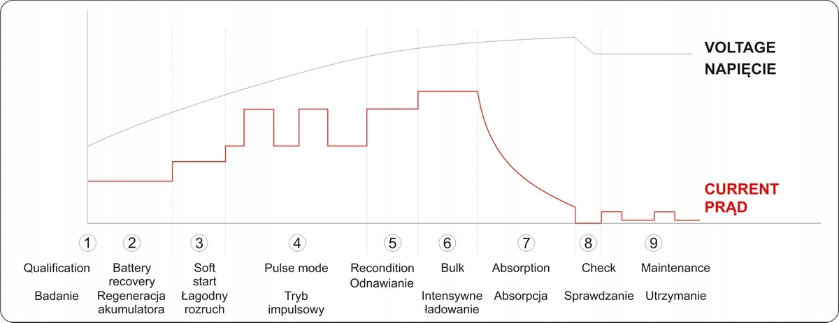 - функция поддержания правильного напряжения в аккумуляторах, работающих в режиме ожидания – поддерживающая зарядка