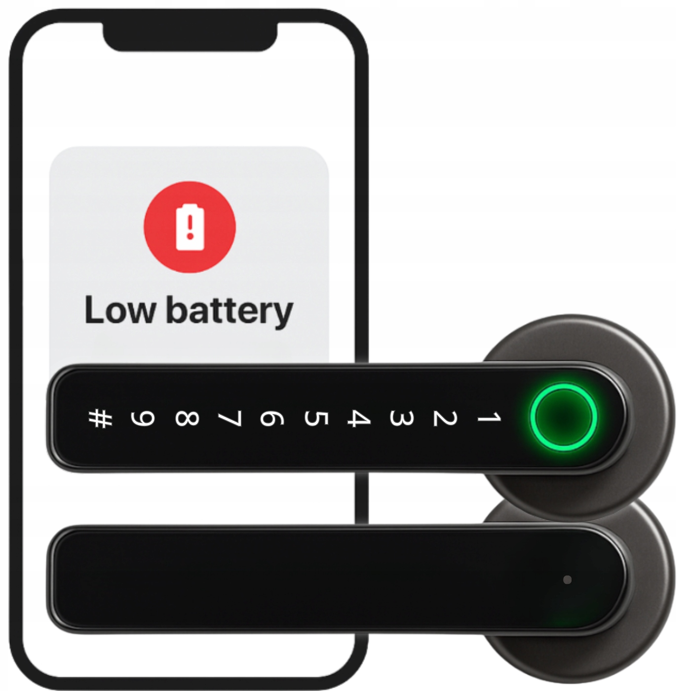 Замок оснащен сигнализацией о низком заряде батареи, что позволяетпостоянно контролировать состояние питания. В приложение будет отправлено уведомление о низком заряде батареи ≥20%, ≥10%, ≥5% и красный индикатор на самом замке загорится после его разблокировки (3 мигания).