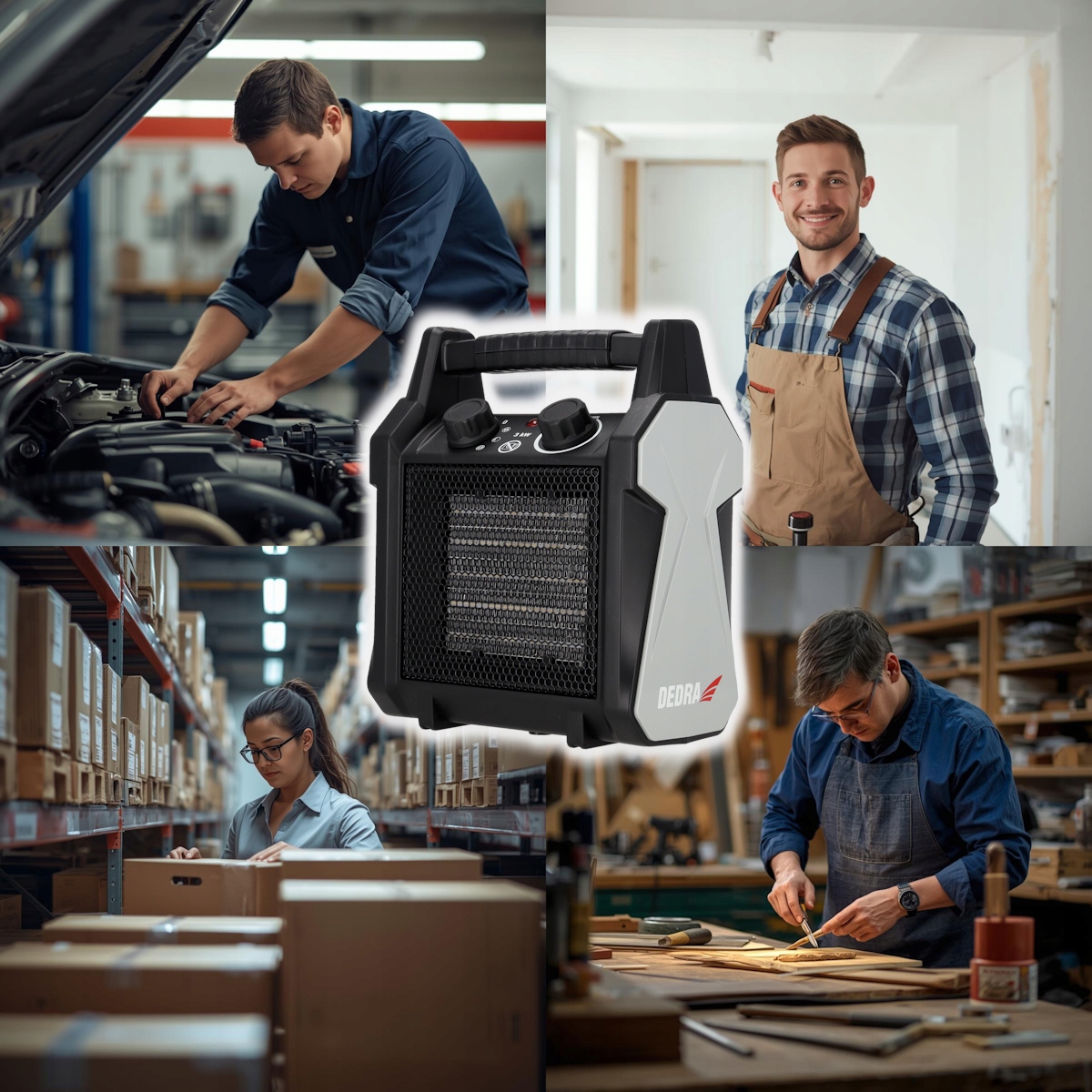 Модель DEDRA DED9931C4 предназначена для быстрого обогрева помещений температурой до ок. 30 м², например, офисы, мастерские, гаражи, дачи или санузлы (если они хорошо вентилируемые и сухие).