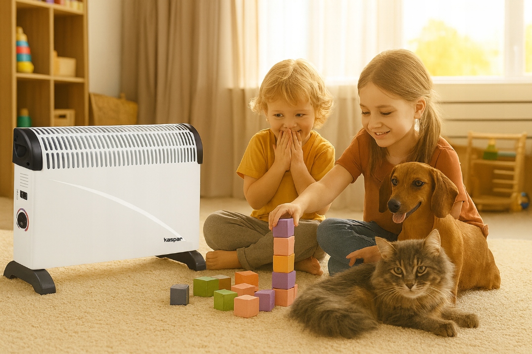 Работает по принципу конвекции: воздух, нагретый внутренним нагревательным элементом, поднимается вверх, постепенно наполняя теплом все помещение. Устройство работает тихо, не создает клубов пыли и идеально подходит для аллергиков и людей, ценящих тишину и покой.