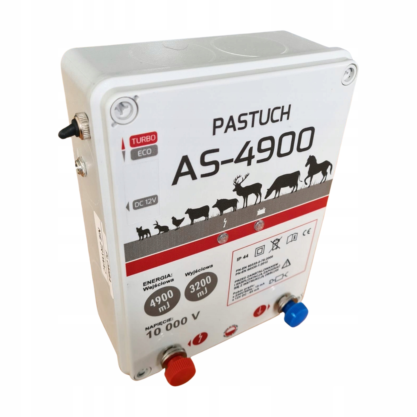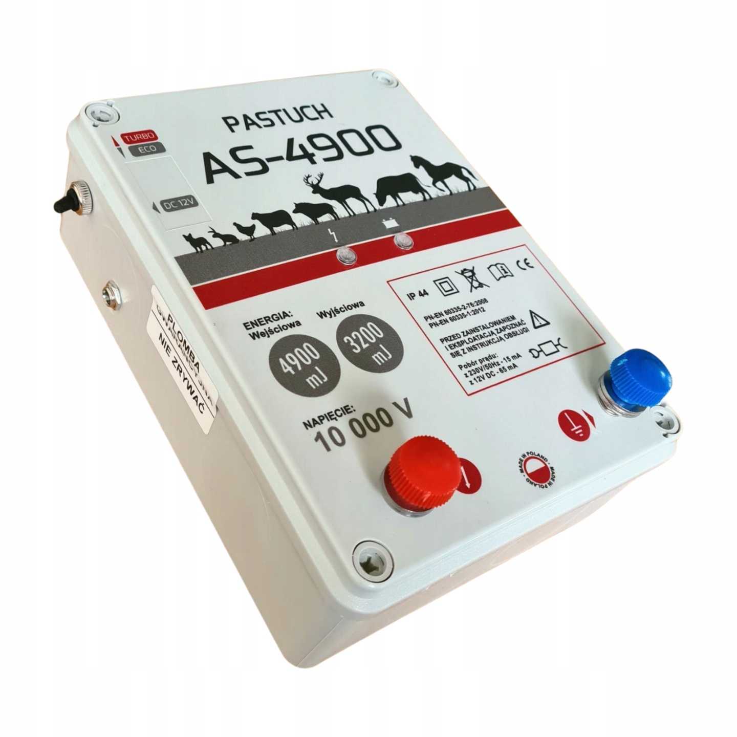 Pastuch Pomelac AS-4900 — универсальный электрогенератор, работающий от сети или аккумулятора, простой и эффективный, с отличным соотношением цены и импульса. Мощный сетевой аккумуляторный блок питания, предназначенный для электроизгородей для защиты мясного скота, густошерстных собак, а также от диких животных: кабанов, косуль, оленей, выдр и других. Энерджайзер герметично заключен в прочный корпус, защищающий от влаги, воды и других загрязнений. Он отличается безотказной работой, современным и простым в использовании дизайном и исключительно выгодной ценой.
