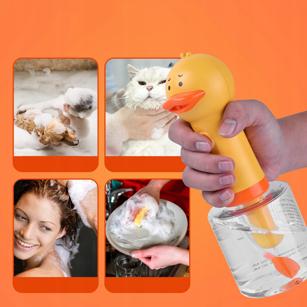 🐥🧼🚿 Электрическая пена для чистки собак, насадка для шампуня для собак, водонепроницаемость IPX5, перезаряжаемый дозатор мыла для собак, 1200 мАч, очень длительное время работы в режиме ожидания, емкость 350 мл.