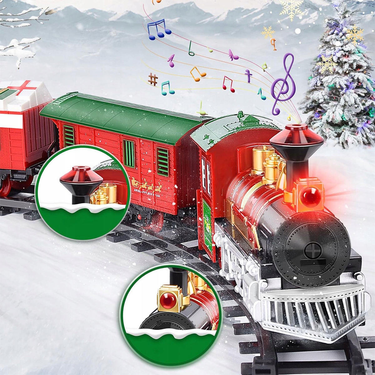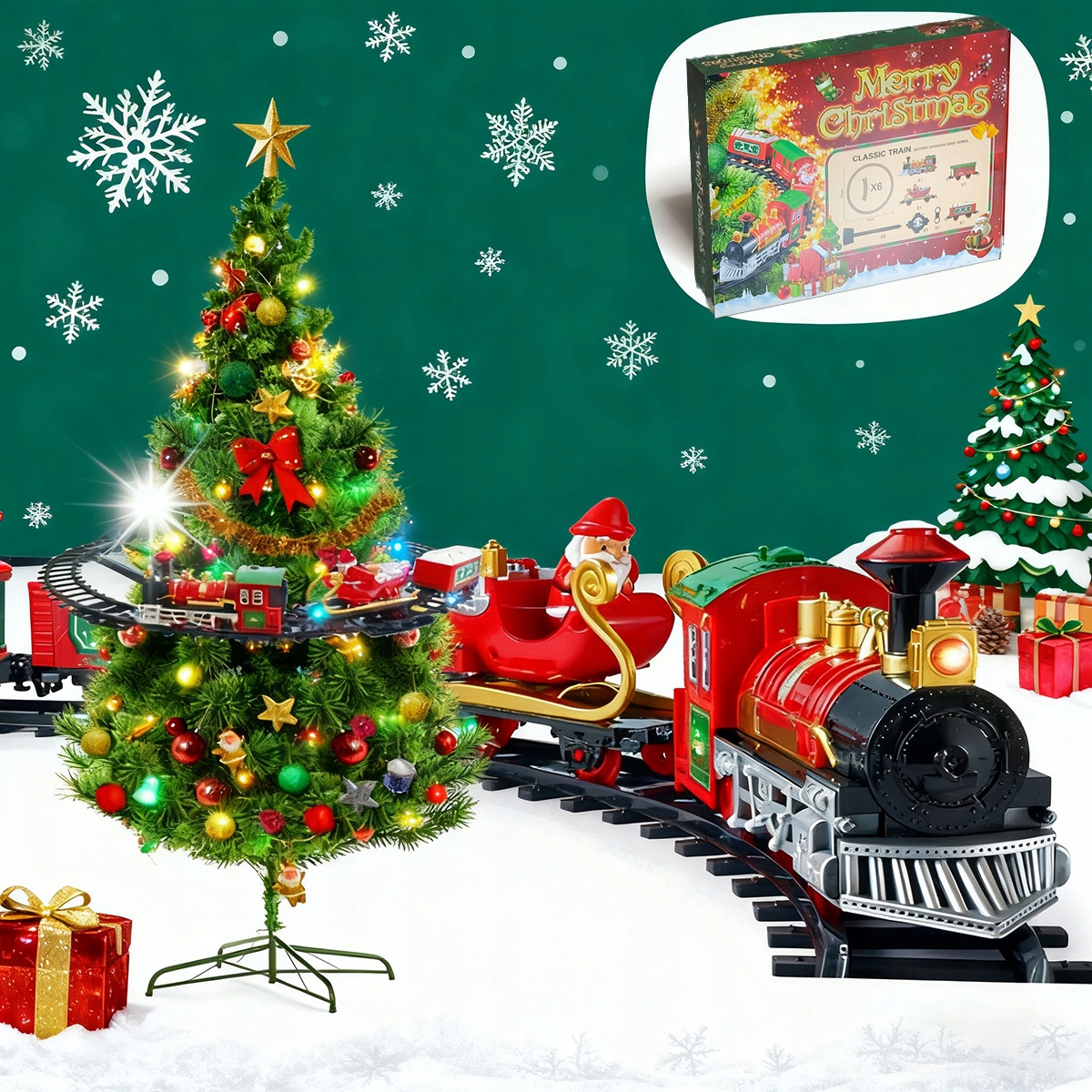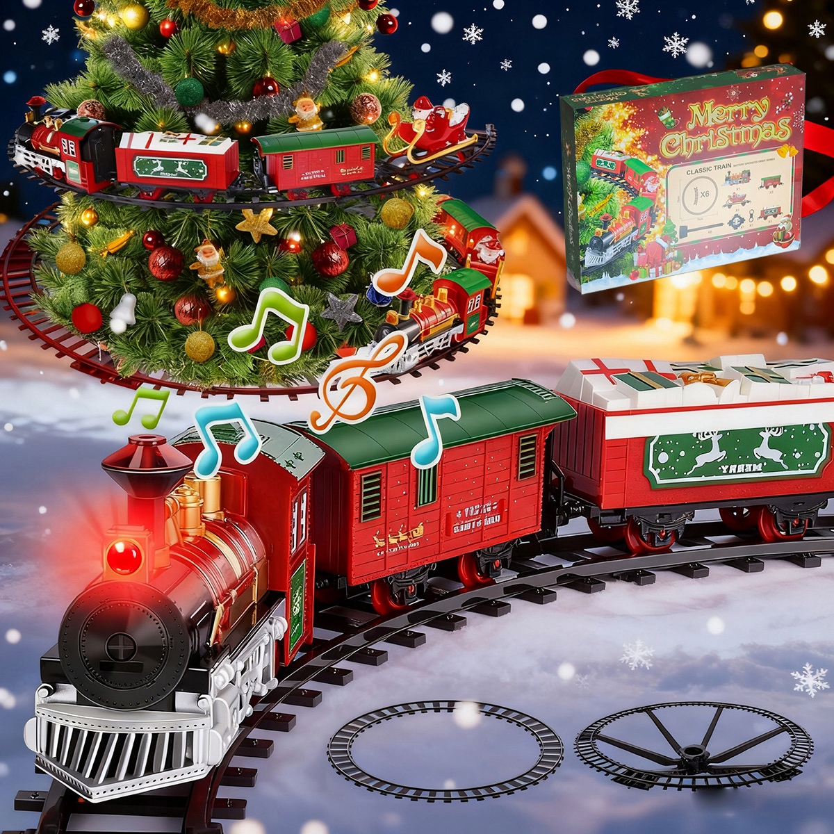 🎄【Новый креативный набор «Рождественский поезд»】В набор «Елочный поезд» («В рождественских елках») входят электропоезд, карета Санты, легковой автомобиль (графика и надписи на кузове расположены случайным образом), рождественский подарочный автомобиль и трековые аксессуары. Это роскошный набор для детей. Вы можете использовать поезд, чтобы украсить елку и провести приятное и уютное Рождество в кругу семьи и детей. ‼️Примечание: на этой модели изображен поезд, который движется по елке. Входящий в комплект держатель позволяет прикрепить дорожки к стволу елки. Альтернативно, рельсы можно разместить прямо под елкой без ручки.