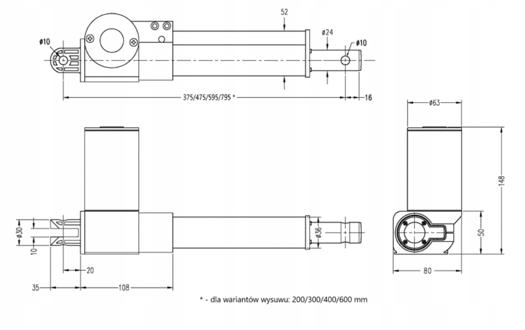 - Скорость выдвижения (без нагрузки): 20 мм/с