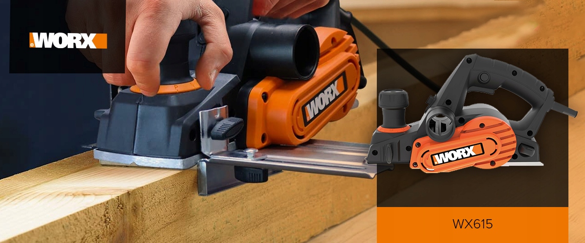 Электрический рубанок WORX WX615 мощностью 750 Вт и глубиной фальца 12 мм.
