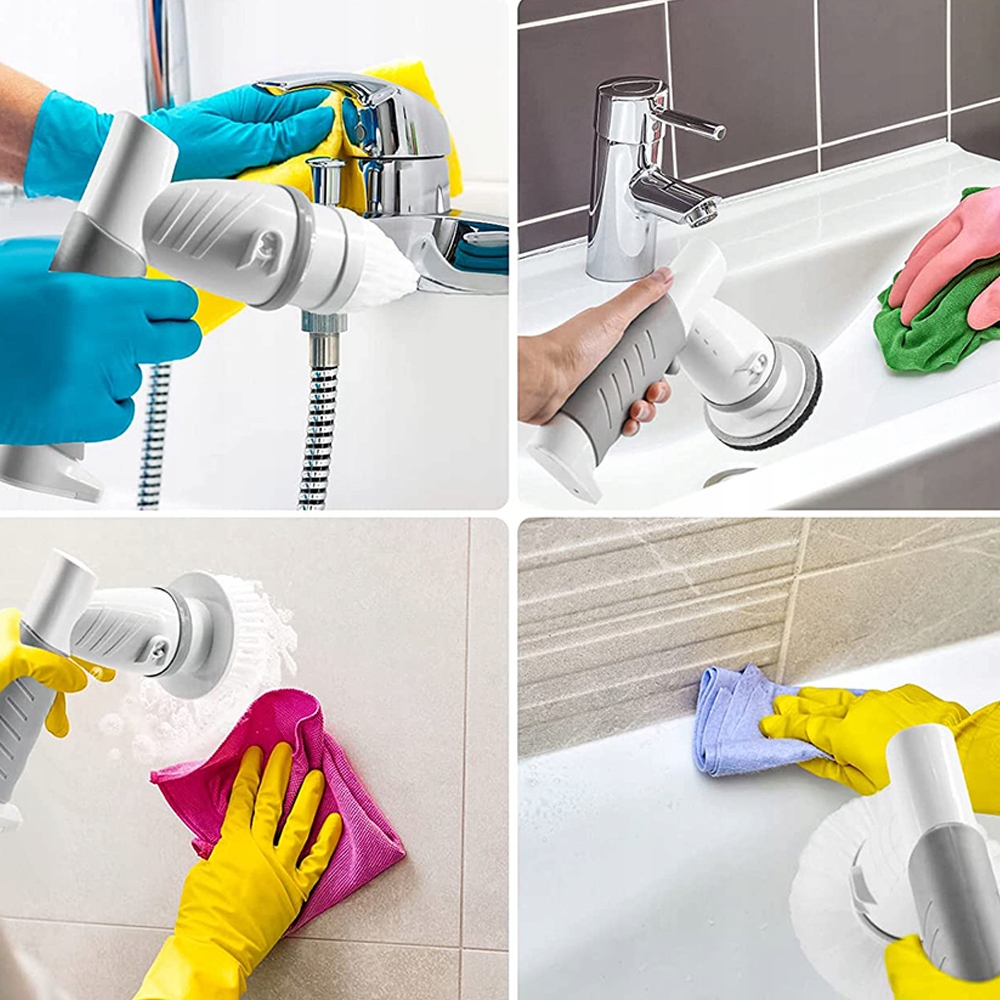 🌈 Многофункциональные насадки: Включает 6 различных сменных насадок, идеально подходящих для чистки ванных комнат, ванн, кухонь, столешниц, плит, раковин, стекла, плитки и т. д.