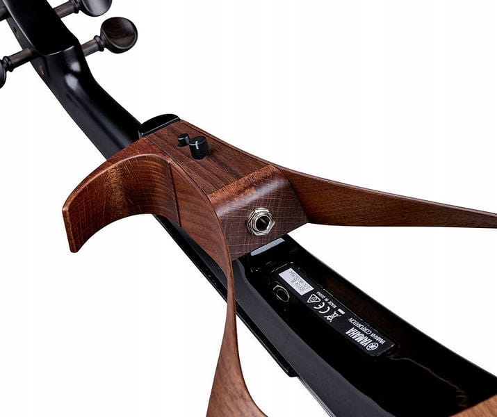 Звуковая система представлена пьезоэлектрическим преобразователем, встроенным в кленовую накладку грифа, с пассивным выходом и переключаемым регулятором громкости. Колки изготовлены из черного дерева, трости – из прочного композитного материала, а именно синтетической смолы. Благодаря этому скрипка удивляет действительно небольшим весом — 560 грамм. Струны D'Addario Zyex.