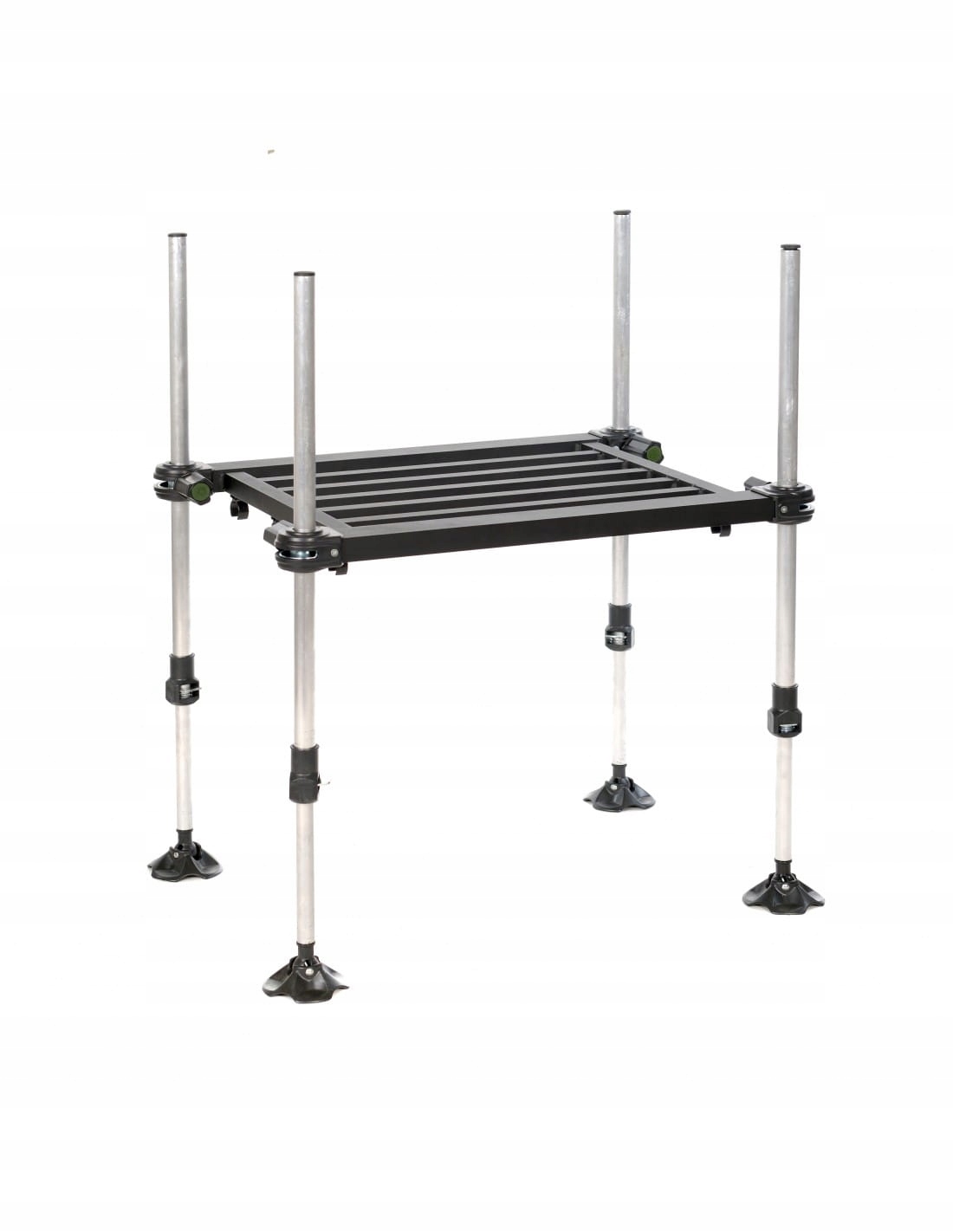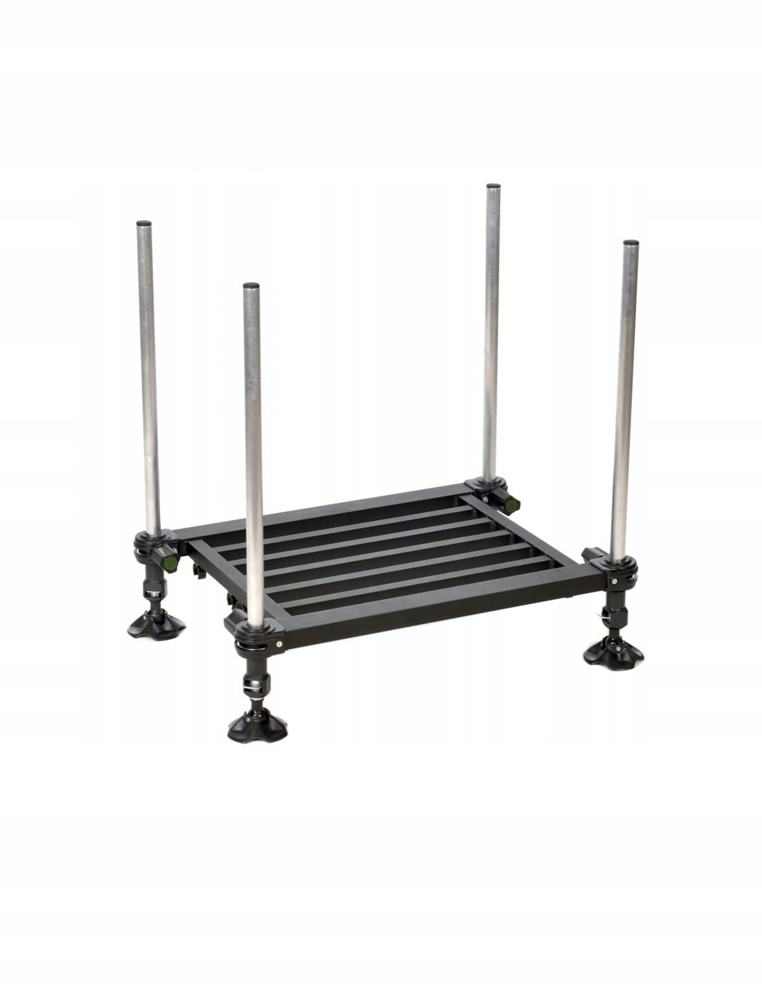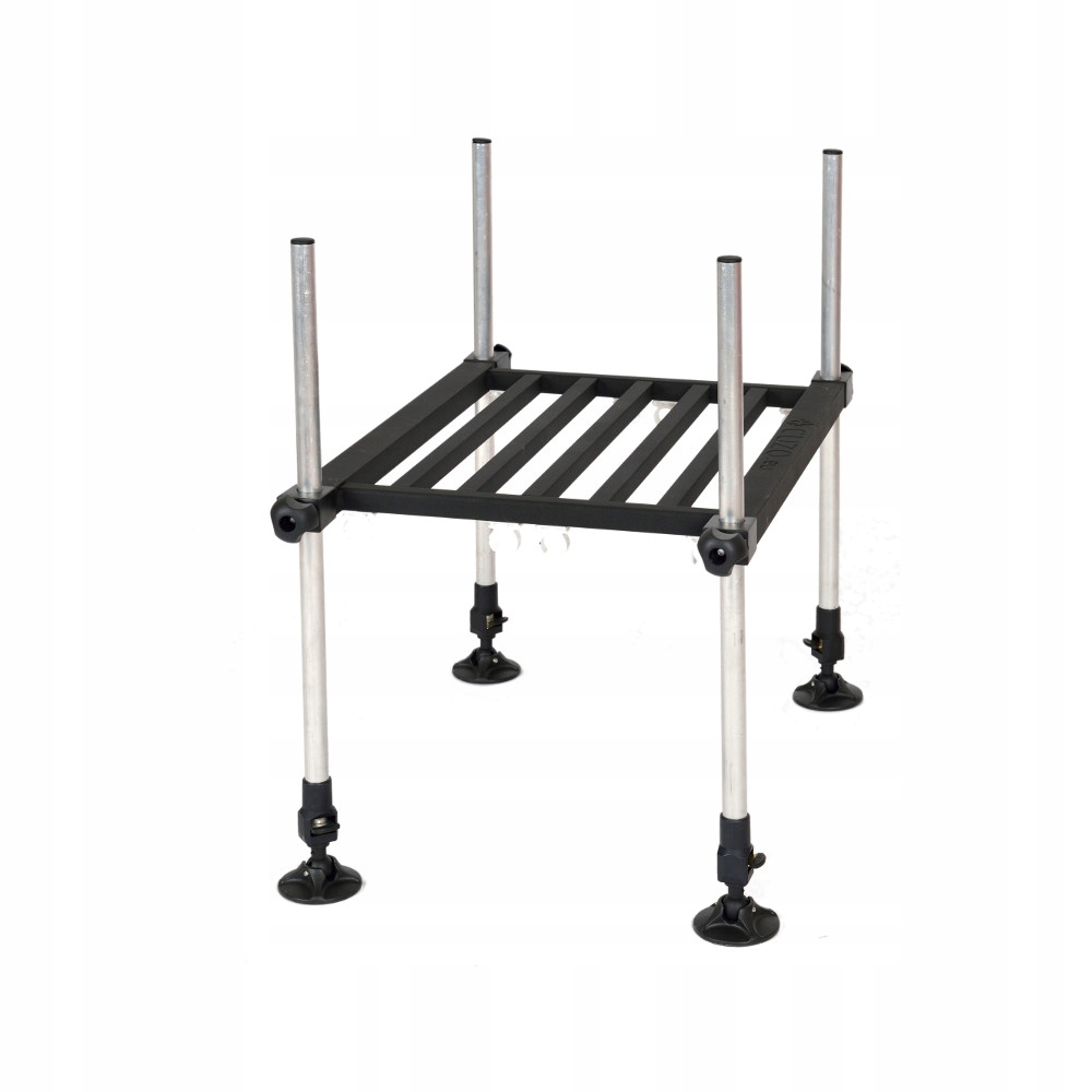 Его каркас изготовлен из алюминиевых профилей, благодаря чему вес не превышает 6,5 кг. Спинка имеет шарнир, позволяющий менять угол ее наклона, что существенно повышает комфорт многочасовой рыбалки. Уровень, входящий в комплект, позволяет точно выровнять сиденье по уровню. Дополнительно ножки оснащены вставкой с резьбой 3/8″х20, что позволяет прикрепить дополнительные аксессуары.