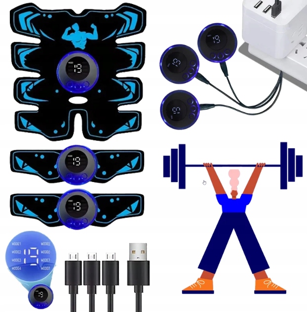 ЭЛЕКТРОСТИМУЛЯЦИЯ МЫШЦ ЖИВОТА EMS 8 РЕЖИМОВ ПОЯС ДЛЯ ПОХУДЕНИЯ С ГЕЛЕМ