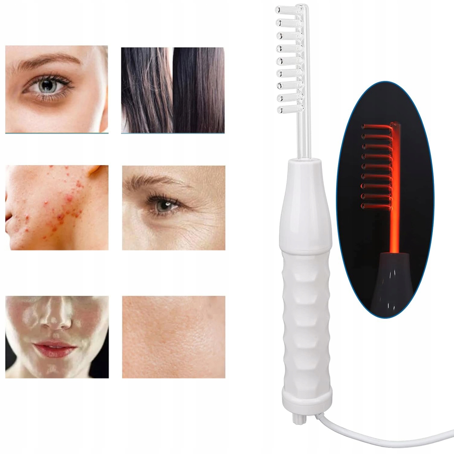 Высокочастотное устройство для лица генерирует высокочастотный ток через стеклянную электродную трубку, стимулирует синтез АТФ, ускоряя обновление клеток, останавливая и, в конечном итоге, обращая вспять процесс старения, что приводит к более упругому и молодому виду. кожи.
