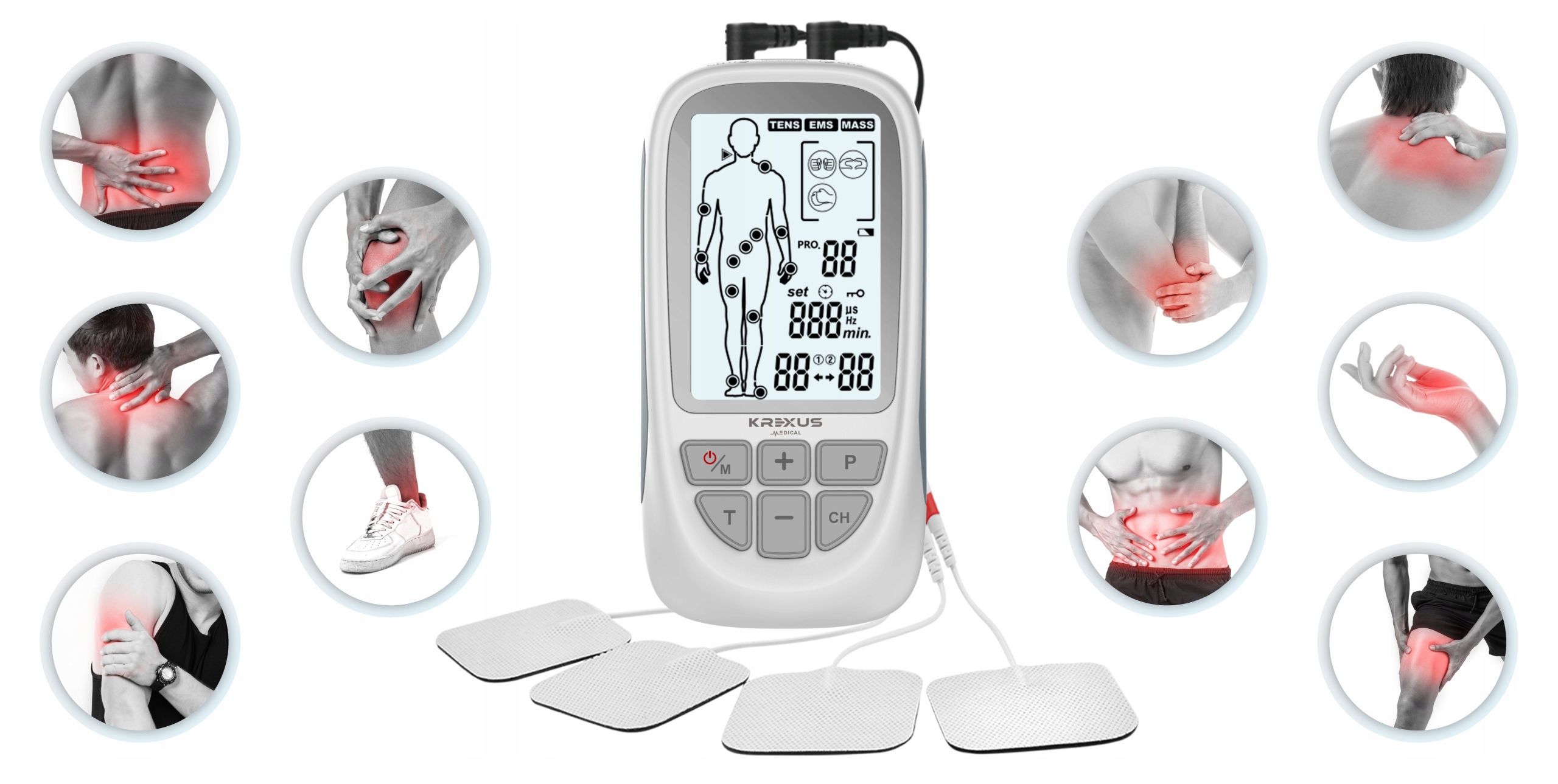 Портативный электростимулятор KREXUS — это высококлассное, современное медицинское изделие, использующее лечебные свойства электрического тока, предназначенное для домашнего использования. и профессиональное использование - в больницах, реабилитационных центрах или спортивных клубах.