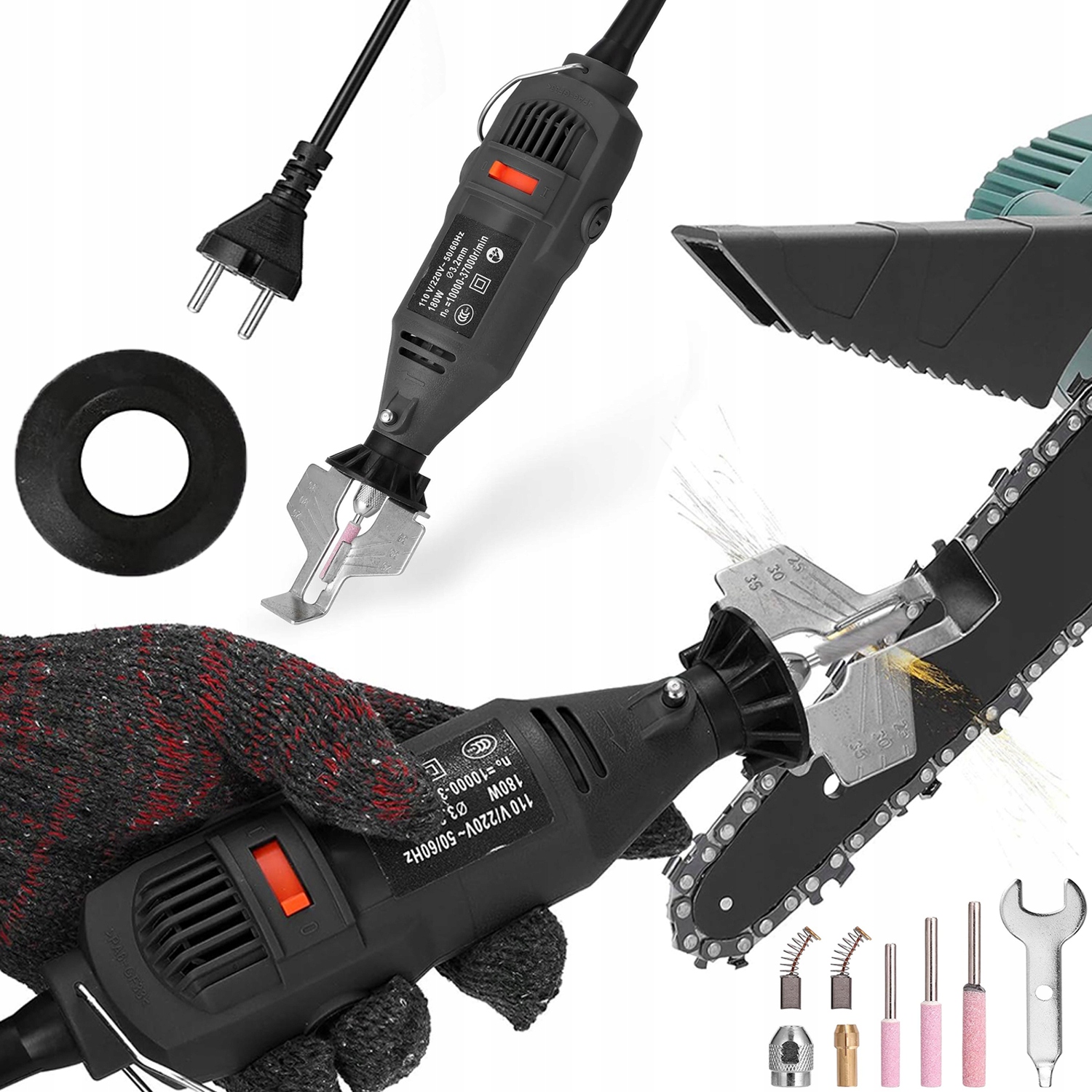 – Мощная машина мощностью 180 Вт легко и плавно справится даже с самыми тупыми цепями бензопилы за считанные минуты, экономя время, энергию и продлевая срок службы вашей бензопилы.