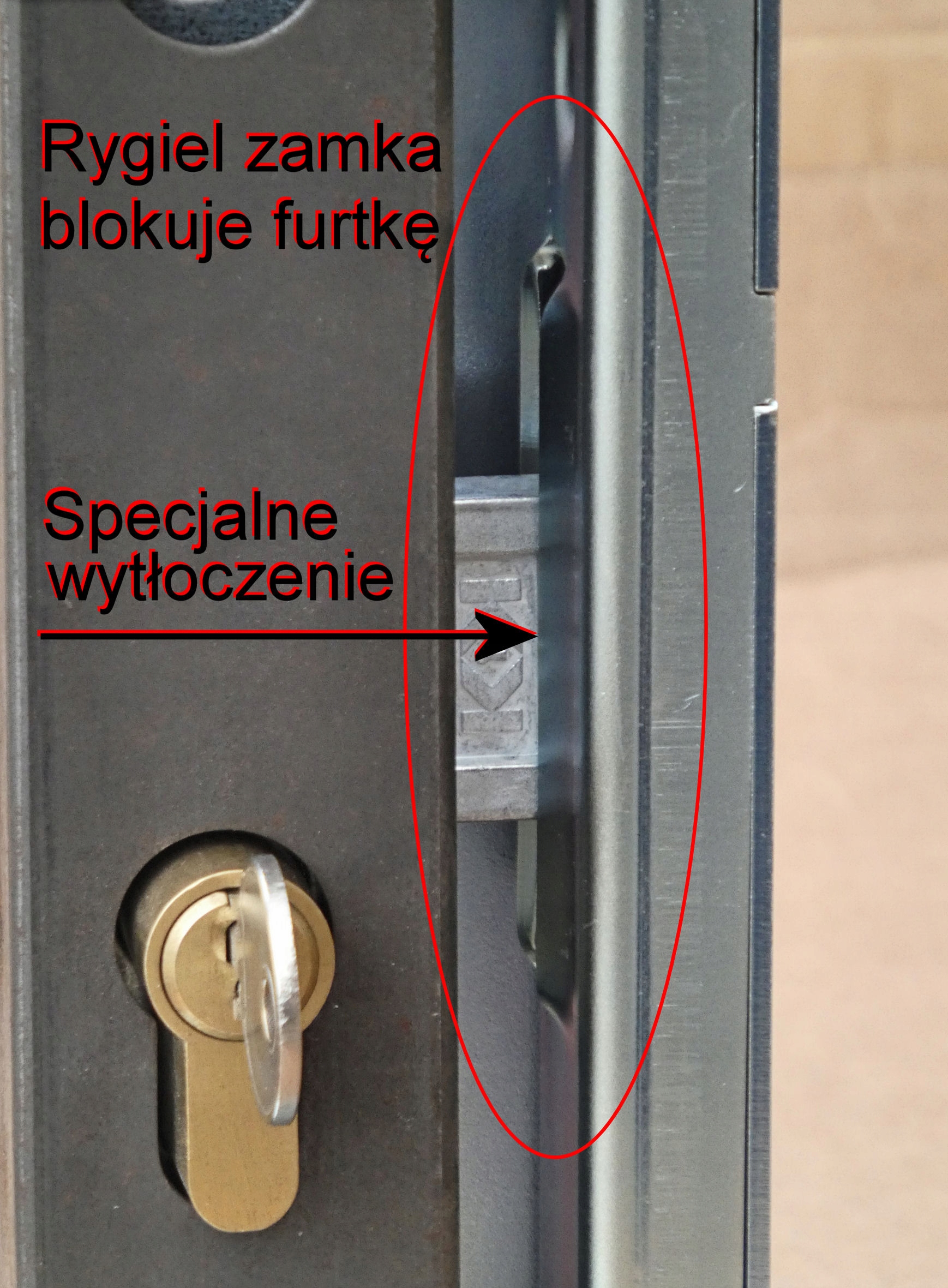 - Имеет вырез из листового металла, предназначенный для ворот с узким замком – не цепляется за ручку, установленную на узком профиле.