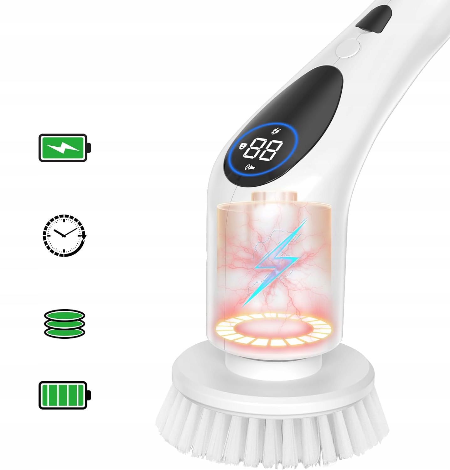 🔵🔵 Наша электрическая щетка для чистки полностью водонепроницаема (но не погружайте все в воду), поэтому она может работать в воде в течение некоторого времени. долгое время не причиняя никаких повреждений, что делает его идеальным для чистки ванн, душевых кабин и плитки в ванной комнате. Беспроводная конструкция означает, что шнур не мешает уборке труднодоступных мест.