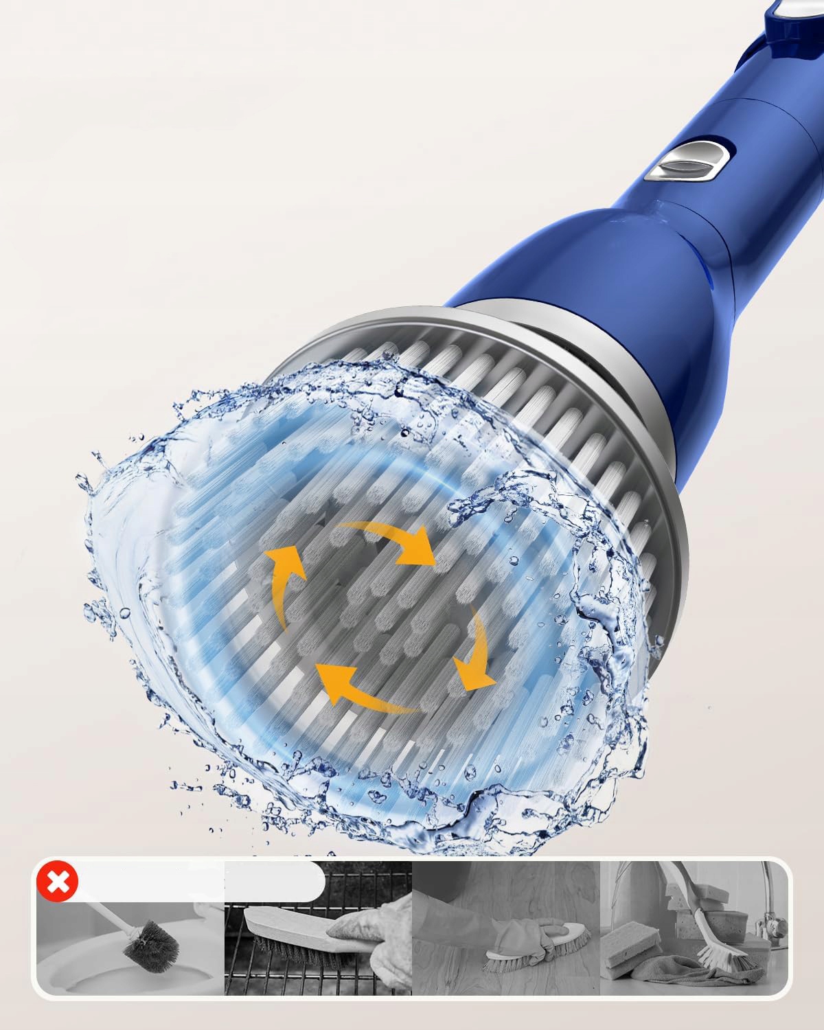 【Эффективная чистка】 -- Максимальная скорость чистящей щетки составляет 435 об/мин, а благодаря мощной головке щетки она быстро и легко удаляет стойкие пятна. Это облегчает работу по дому и снижает нагрузку на суставы и спину. Для достижения лучших результатов очистки используйте его вместе с моющим средством.