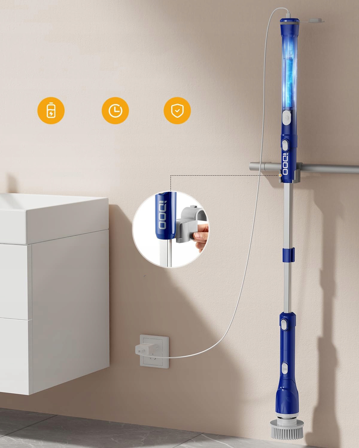 【Долговечность】 Электрический скруббер iDOO оснащен прочным утолщенным удлинителем из алюминиевого сплава. Он не деформируется со временем, снижает вибрацию щетки во время работы, не жертвуя при этом легкостью и удобством использования.