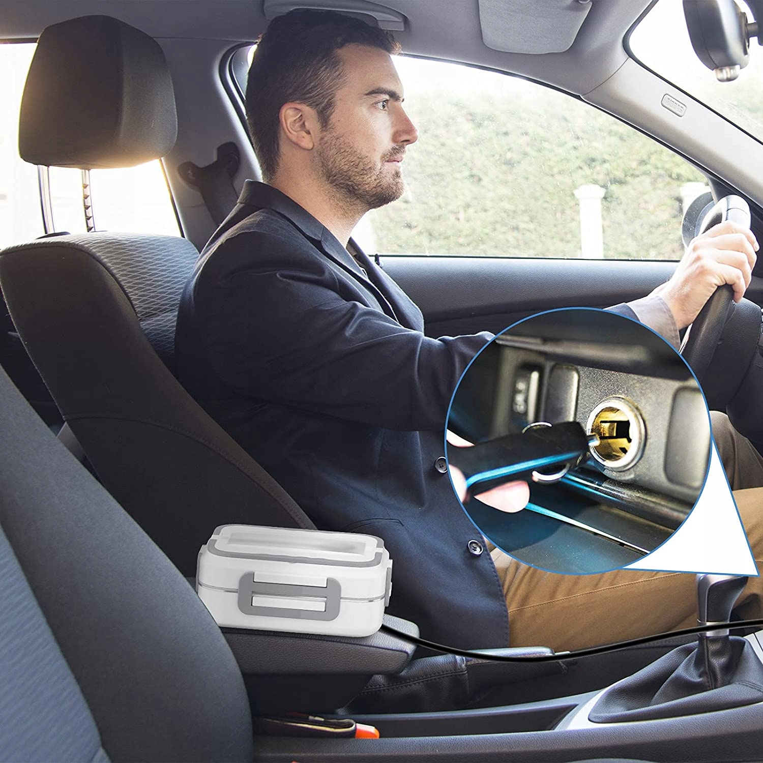 🍱 Этот ланч-бокс для подогрева еды оснащен двумя розетками: одна на 220 В для дома или офиса, а другая на 12 В/ 24В для легковых автомобилей и легких грузовиков.