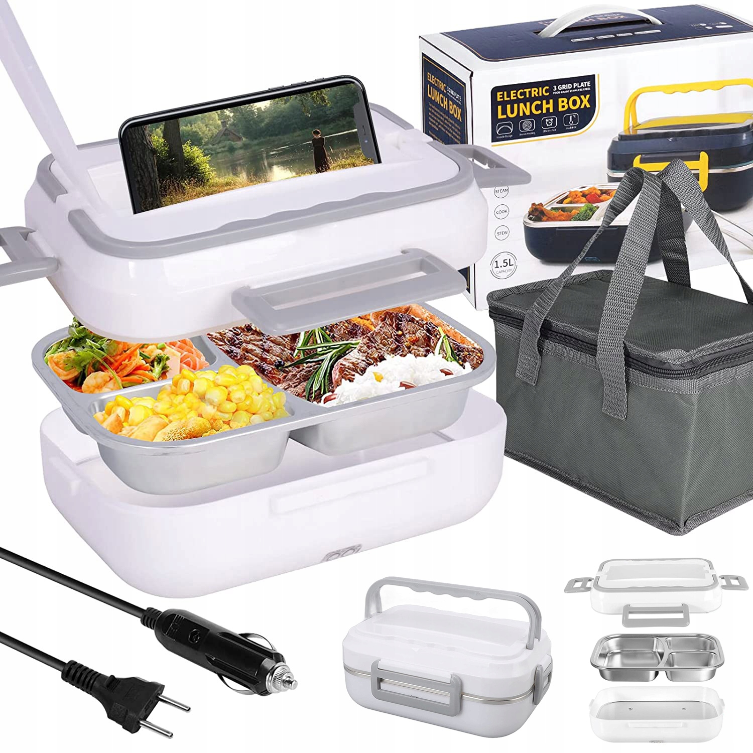 ELEKTRYCZNY LUNCH BOX SAMOCHÓD PODGRZEWACZ JEDZENIA 12V 24V 60W 1.5 L BIAŁY