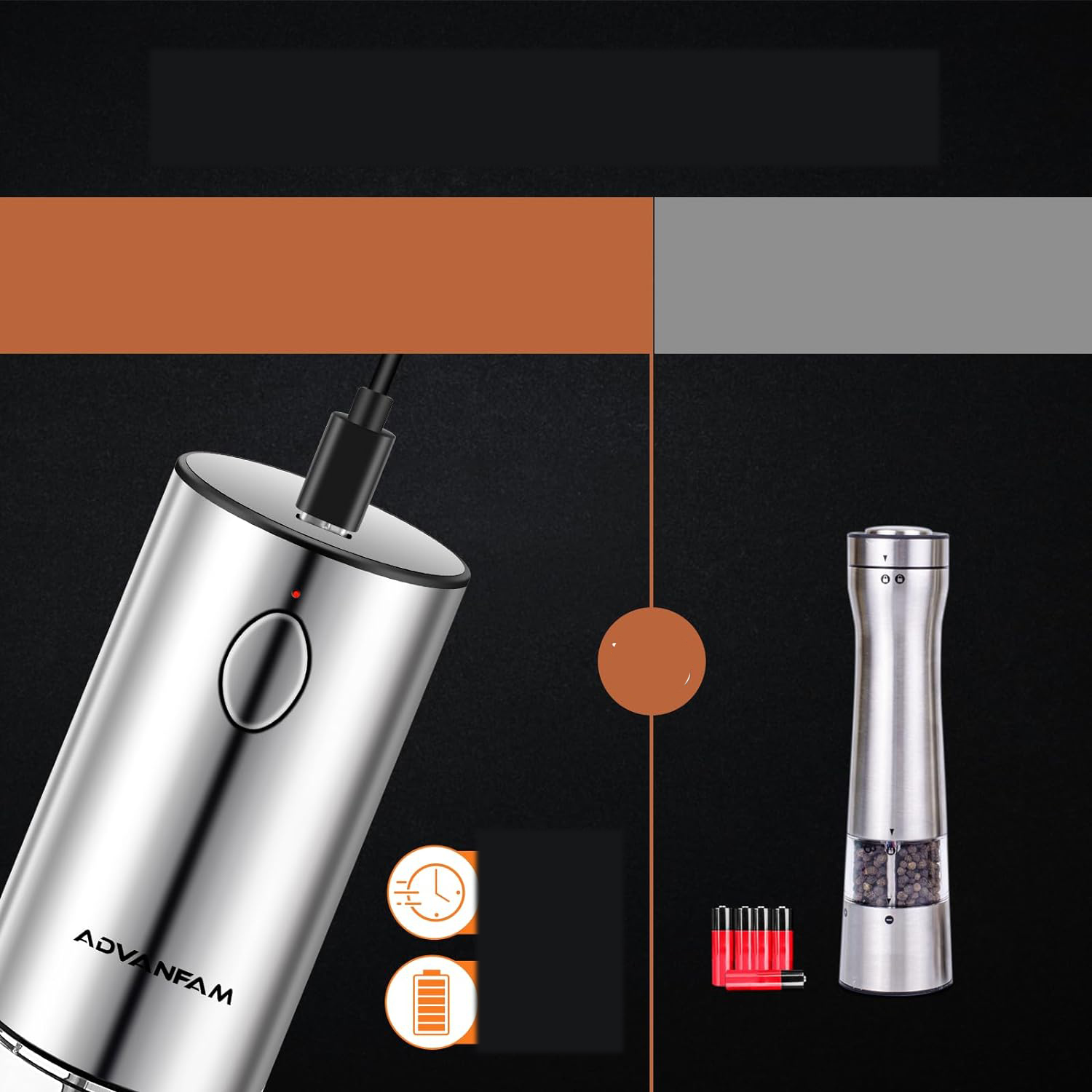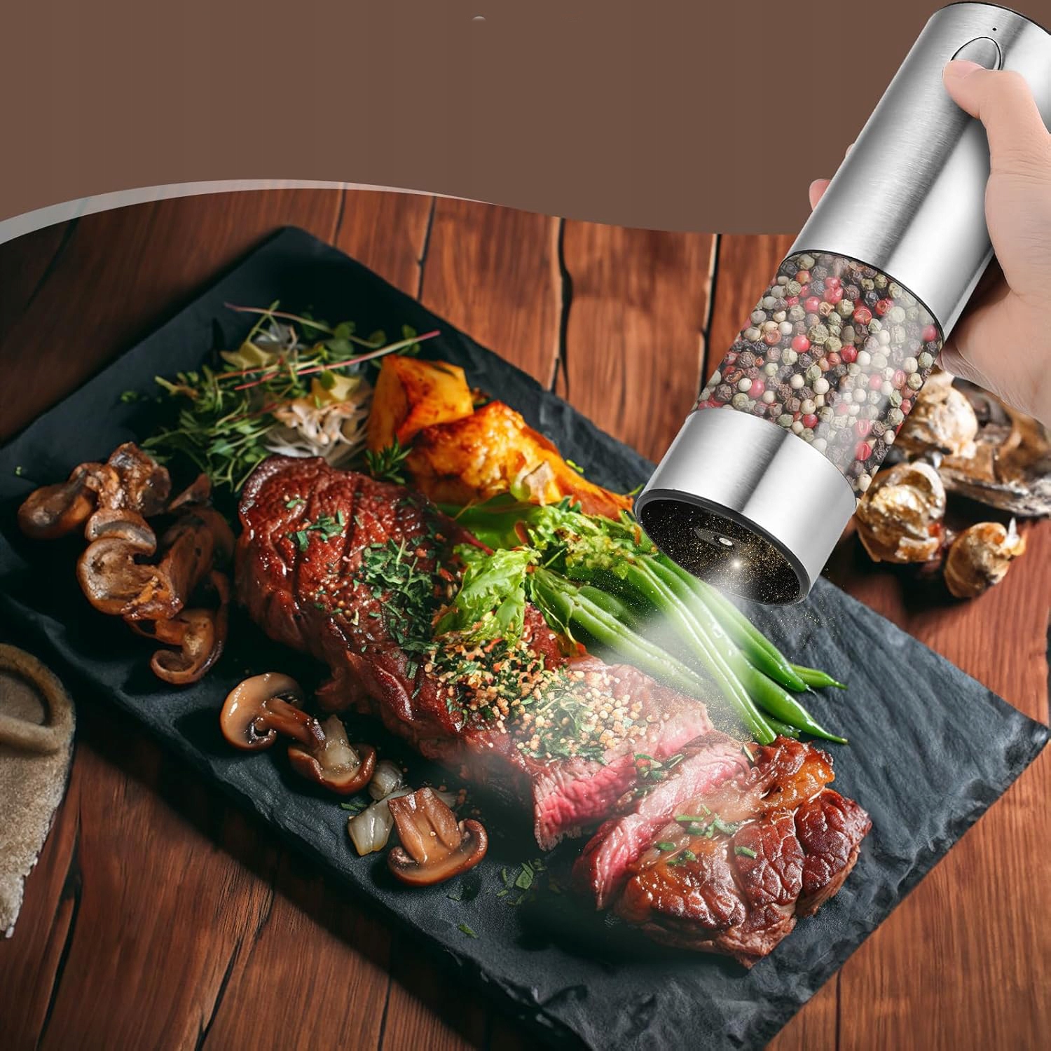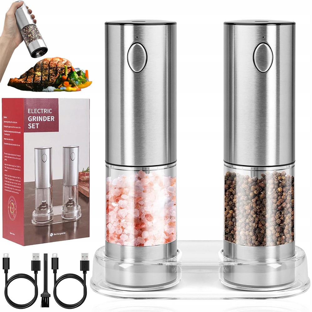 ELEKTRYCZNY MŁYNEK SOLI DO I PIEPRZU LED USB 2 SZT REGULOWANA GRUBOŚĆ 25W