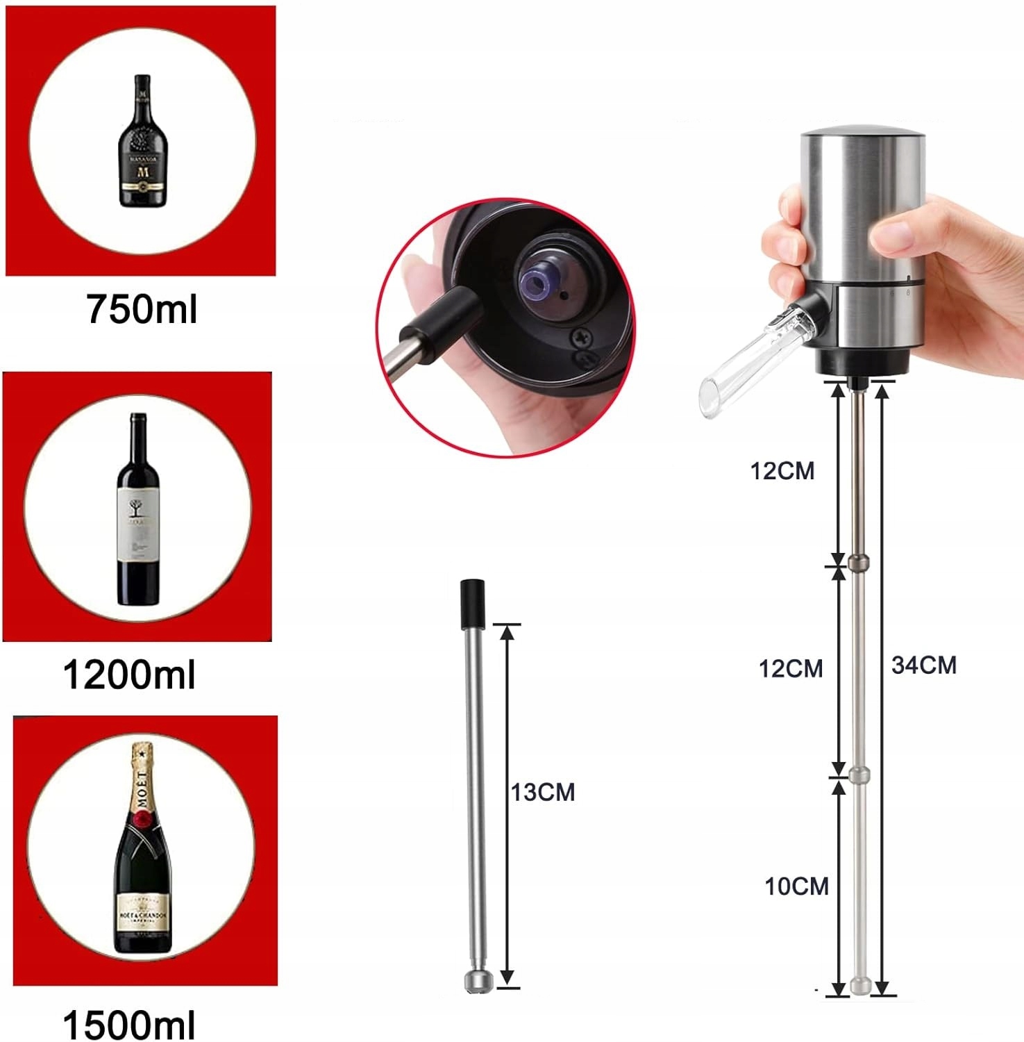 Elektryczny Napowietrzacz do wina AERATOR Nalewak Dozownik do Wina Inox