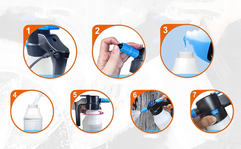 ✅ Аккумуляторный электрический распылитель для мойки автомобилей: Зарядное отверстие этого электрического распылителя пены расположено в ручке бутылки. Он перезаряжается от USB и может распылять пену в течение 20–30 минут после полной зарядки.