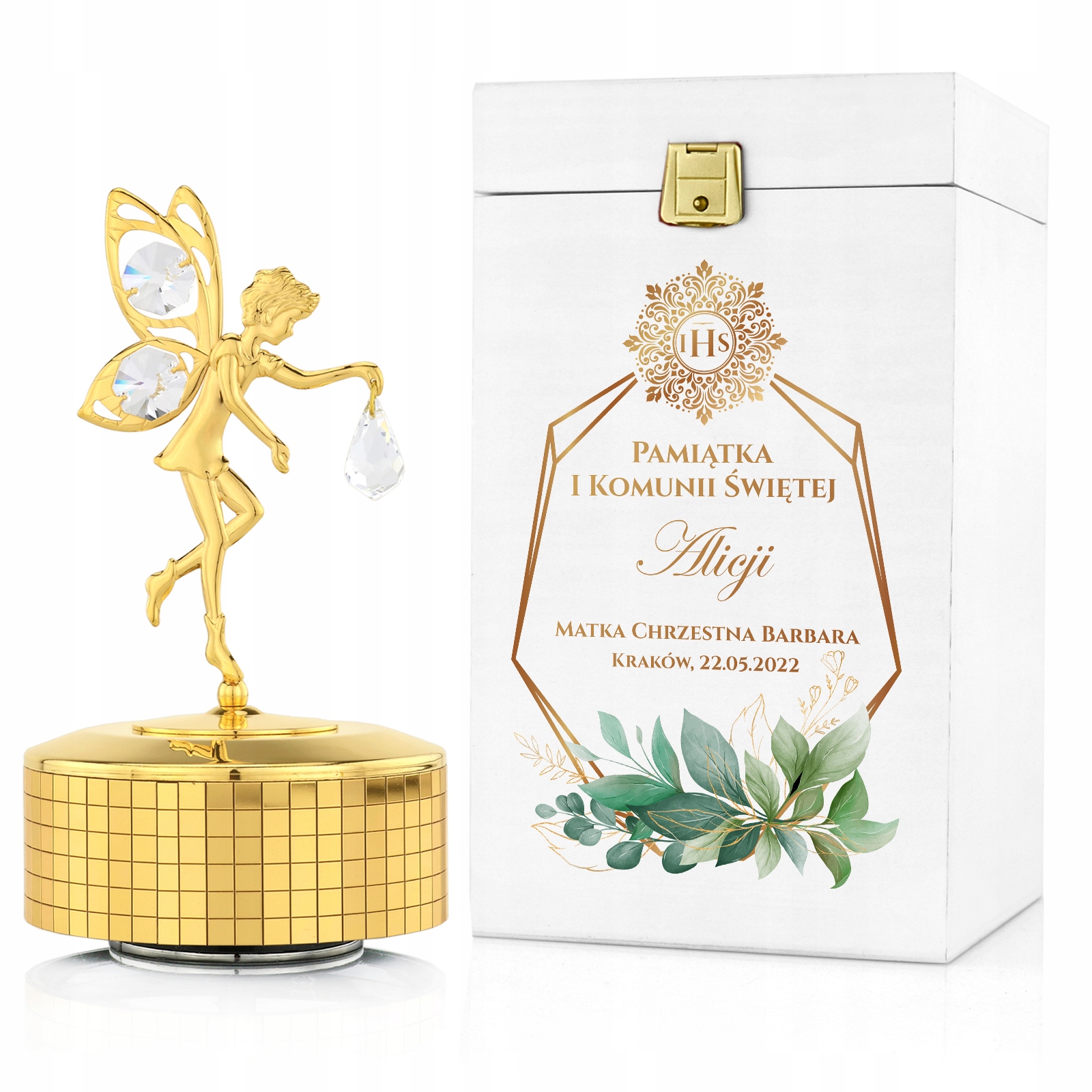 Позолоченная музыкальная шкатулка Elf, украшенная кристаллами Сваровски – отличная идея для подарок ребенку по случаю б>первого причастия или дня рождения. Он прекрасно подойдет как элемент декора детской комнаты, а благодаря гравировке индивидуальной направленности станет идеальным сувениром на долгие годы.