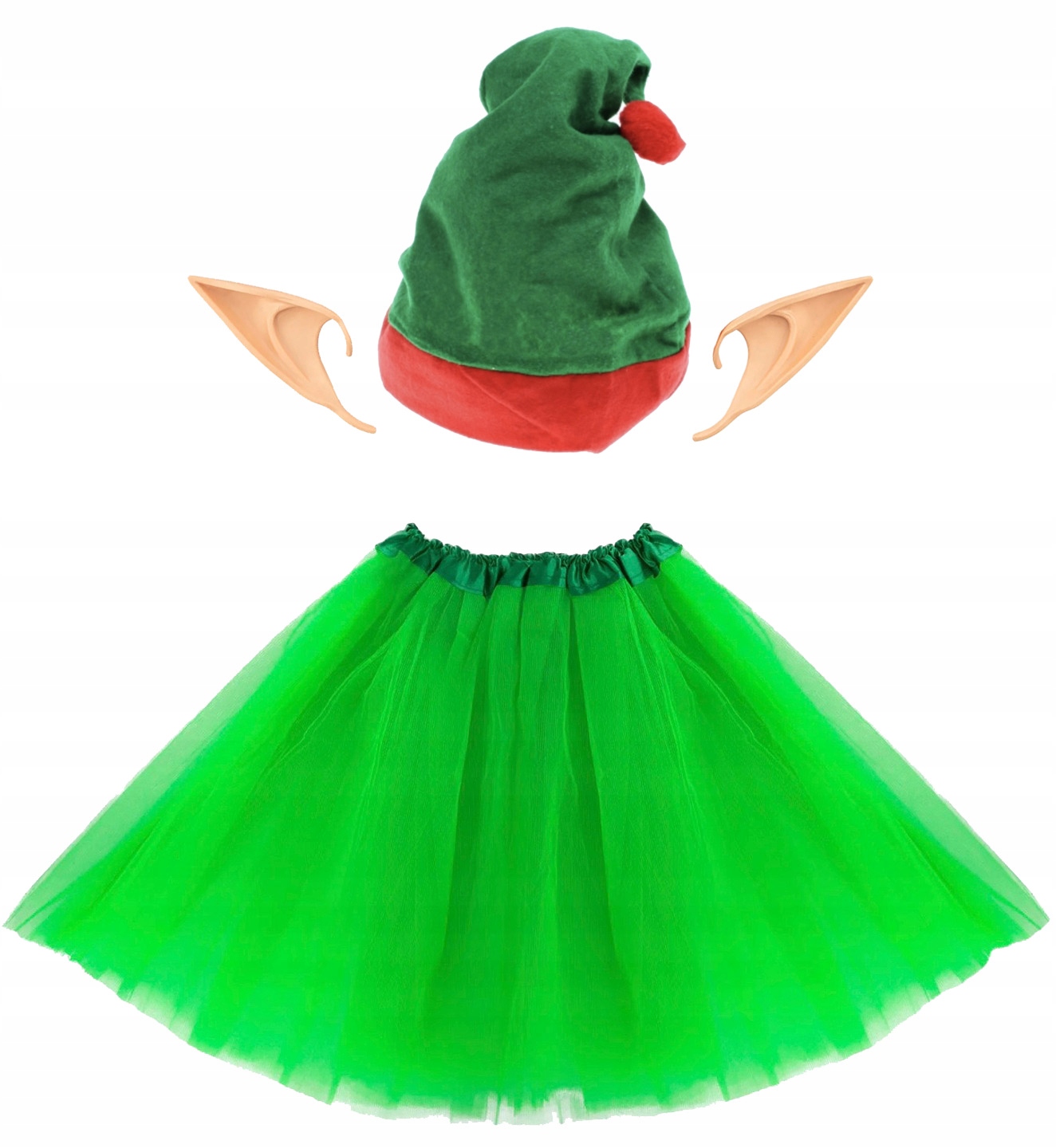 ЕЛЬФІЙСЬКИЙ КОСТЮМ ЕЛЬФІВ СПІДНИЦЯ-ПАЧКА З ЗЕЛЕНОГО ТЮЛЮ 40см + КАПЕЛЮХ і ВУШКА