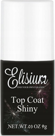 Нанесите тонкий слой Elisium Top Coat Shiny. на предварительно затвердевший цветной гибридный лак и сушите в УФ/LED-лампе. Top Coat Shiny не требует протирания чистящими средствами.