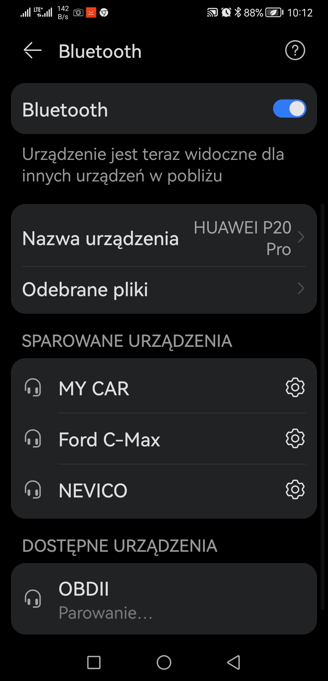 ✅ Включите Bluetooth >, установите видимость и найдите устройство OBDII и выполните сопряжение с ним.