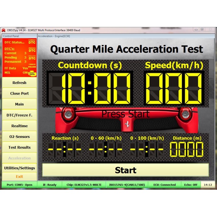 - Очистить контрольный контроль двигателя <Удаление. В качестве ускорения от 0 до 100 км/ч