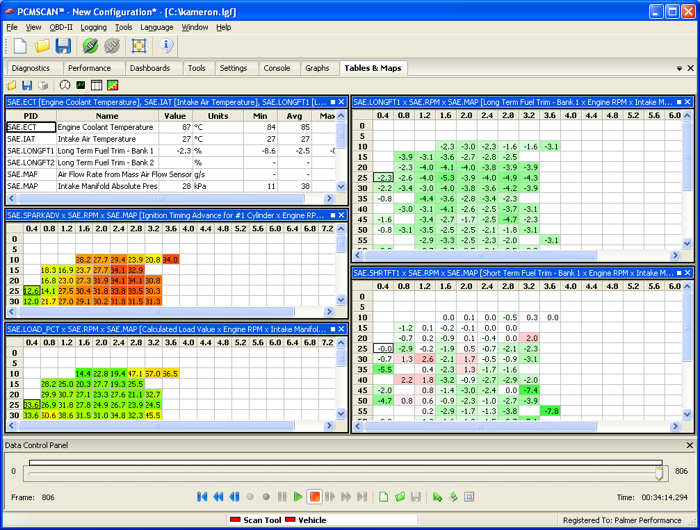 - Мониторинг параметров эксплуатации двигателя в режиме реального времени (Live)